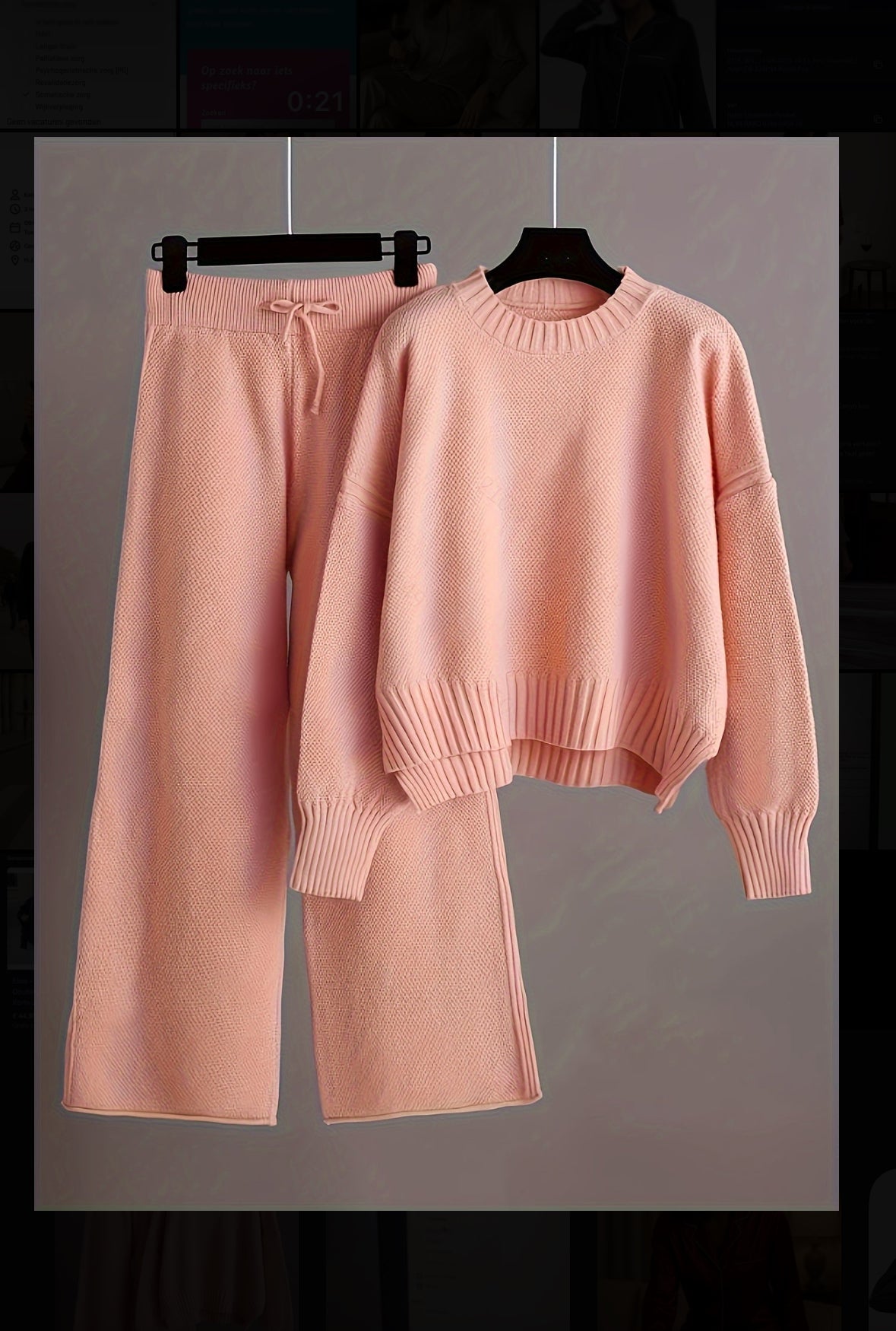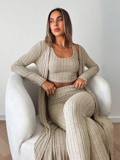 The wide-leg pants and matching zip-up sweater exude effortless elegance while offering maximum comfort, making this set the perfect blend of chic and cozy.